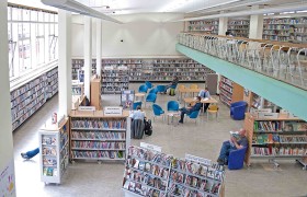 The mezzanine, now home to much of the non-fiction lending collection, originally held academic titles, while the reference collection was on the first floor, in a room now divided to form the local studies library and a book stack. Adjacent to this were a commercial library and carousel reading room, on split levels divided by short flights of stairs. The children’s library was in the basement and had a small fan-shaped theatre, raised dais for storytelling and an aquarium. The music library, offices, book-bindery, staff room and reference library stack were on the second floor, while on the third floor there was a 250-seat lecture theatre and associated facilities, now used as offices.
