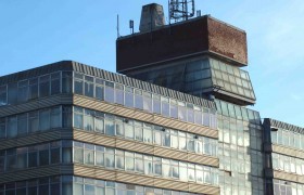 While the general proportions of the principal four storey volume of the building are satisfactory (filling the offices and graphic design studios with natural light) the overall appearance is marred by a later re-cladding of the building in corrugated panels. Having now been vacant for almost a decade, with no sign of re-use or re-occupation, Sovereign House is now in a parlous and highly visible state of disrepair. Former HMSO employees have recalled how the building was notoriously susceptible to temperature fluctuations, and it has clearly been left behind by the ever more demanding expectations of the commercial rental market. While the substantially inferior Gildengate House has now found some re-use as low cost studio space for artists and graduates from Norwich University of the Arts (NUA), there has been little enthusiasm for repurposing Sovereign House for creative use – a tragedy given the large number of talented graphic designers who once worked in its naturally lit studios and offices.