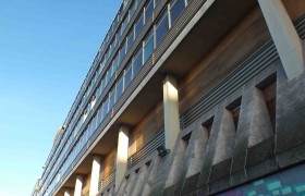 To the north of the shopping plaza is a multi-storey car park, shut in stages from the top floor down until being completely shuttered in 2012. Its brick and concrete horizontality is perhaps the most refined element of the whole complex; it is made even more so by the forgettable Gildengate House office block which attempts to mirror it to the south.
