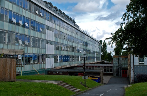 The Society first heard about the current proposals from the architectural press. We were deeply concerned to discover that the land sale was being pushed through with no consultation on the impact of the proposed changes on the listed building and its setting, while the proposals also included demolition and replacement of the gym block, one of the four wings of the school’s cruciform plan. Representations to the Local Planning Authority in February and May stressed the significance of the school building and our concerns about procedure. In July – with English Heritage and DoCoMoMo UK – we led a deputation to the Council’s Finance and Corporate Resources Overview and Scrutiny Committee. The architectural and local press have followed the case closely, as has Time Out magazine, their interest triggered by a vigorous ‘Save Elliott School’ campaign led by former pupils, some of whom have gone on to make their names in the music industry.