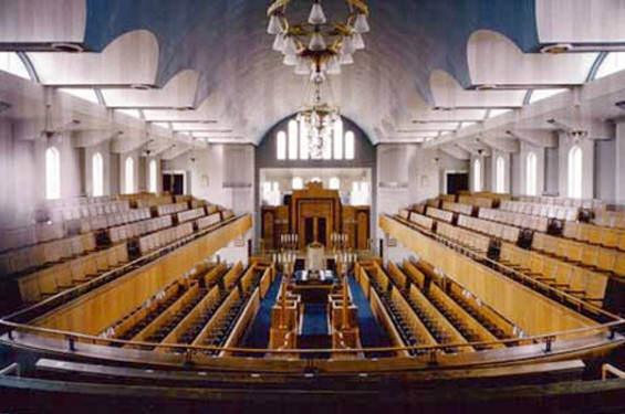 Greenbank Drive is very different as in its design Shennan produced a synthesis of his previous art deco style and other modern architectural tendencies. It directly reflects Swedish architectural influences, both in the exterior of the building, which is clearly inspired by the late fruition of the Swedish national romantic style, and in its interior, which draws on contemporary Swedish functionalism. In consequence, Greenbank stands alone as a synagogue which is really significant in terms of the progressive architecture of its time. Although clearly not ‘international modern’, it was a genuine attempt at a new architecture appropriate for a modern synagogue, and succeeds in these terms. We are for once looking forward, not back to an exotic past.