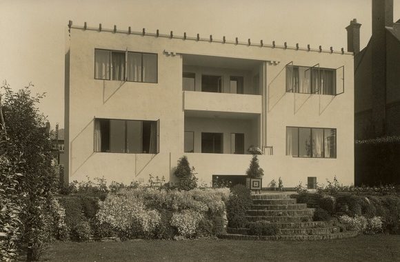 The C20 Society was delighted to find that Peter Behrens’ groundbreaking house, New Ways, Northampton is for sale. Although sometimes billed as Art Deco, it could more properly be defined as Modern Movement or Expressionist and show the influence of the Vienna Secession – plus it was constructed in 1925-26, prior to the popularisation of Deco. Whatever its bracket, it is a remarkable piece of residential architecture – called by some the ‘first modern house in Britain’ – and a formidable asset for its home town.