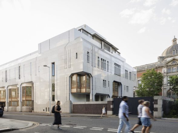 Designed to symbolise ‘the physical representation of Islamic values’, when it opened in 1985 Hugh Casson and Neville Conder’s Ismaili Centre represented an evolution of the practice’s British modernism. Taking up a prominent position on the corner of Exhibition Road, the building is wrapped with a thin skin of polished granite, which has been ‘flame-stripped’ to provide what Concrete Quarterly described as ‘a certain sparkle when seen from the pavements.’ Shahed Saleem chose this as his Building of the Month in January 2014.
