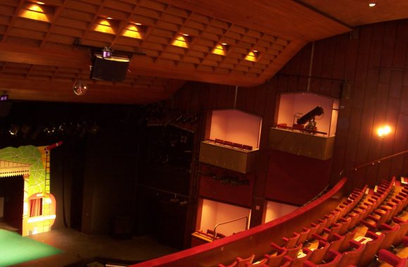 The Belgrade’s auditorium surprised some on account of its relatively traditional form. It is arranged on two levels, with stalls seating, a balcony, and Festival Hall-like side boxes. A traditional proscenium-arch stage was provided, despite emerging debates about the potential of non-proscenium forms. Yet the space was conceived in ‘modern’, even democratic terms. Good sightlines and acoustics for all were emphasised, memorably at a test performance when Gibson’s replacement as City Architect, Arthur Ling, fired a gun on stage in order to demonstrate the acoustic properties of the theatre.