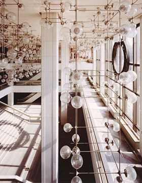 But again the rebuilding focus shifted away from the former Schloss site, this time to Alexanderplatz, with a competition in 1964. It was not until Ulbricht was replaced by Erich Honecker as head of state in 1972 that the project was taken up again. Now the building programme was for a house of the people ( ‘Volkshaus’) and home for East German parliament (‘Volkskammer’). The project rapidly took shape. Architect Graffunder’s team designed a large elongated box made up of a steel frame and clad in a reflective glass envelope, into which were placed on the north site the auditorium of the Volkskammer and, at the south end, a large flexible conference space seating 5000. The interiors that also included bars and restaurants were lavishly detailed, and the wide, double-height foyer featured hundreds of lamps (which led to the Palast’s nickname of ‘Erich’s lamp shop’). The building was a success, not because it represented the state but because it offered amenities that were in very sort supply; restaurants in East Germany were few and far between.