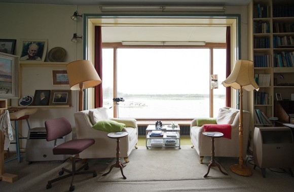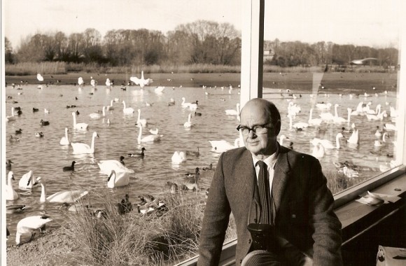 The house at Slimbridge Wildfowl and Wetlands Trust (WWT) was built for Sir Peter Scott, artist, conservationist and broadcaster, who lived there for over thirty years.  The house closely reflects Scott’s life and personality.  It is a house to look out from rather than to look at, and it is the features that enable the outward facing prospect that make the building revealing of its extraordinary occupant.