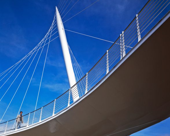 It was bridges that first carried Santiago Calatrava to global prominence, and he has since gone on to design every imaginable civic form: museums, universities, stations and airports, each of them prodigious and haunting. Yet there is only one Calatrava bridge in the United Kingdom, and it crosses the River Irwell, connecting Manchester with Salford.
