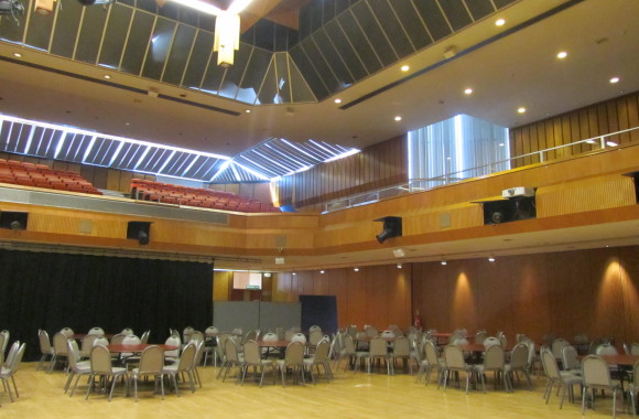 Inside it features a council chamber, mayoral suite, offices and committee rooms on three levels – all lined with elaborate panelling of wych elm. The grand foyer opens out onto the sweeping ceremonial staircase – with built in troughs for indoor plants – and the enormous Great Hall, originally cantilevered over the piazza, has an extraordinary timber faceted ceiling.