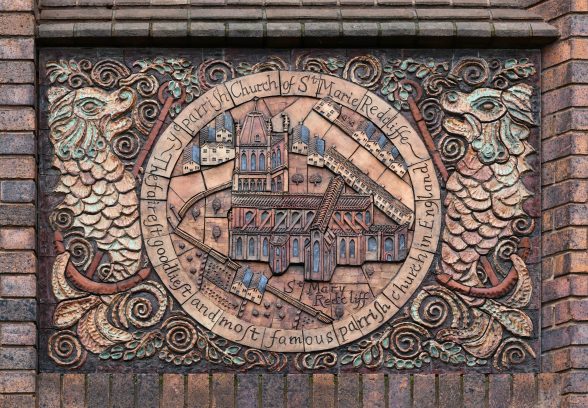 C20 Society has helped to rescue a frieze of fifteen exquisite terracotta mural panels from the 1980s Broad Quay House office building in Bristol, which is set to be redeveloped. Created by artists Philippa Threlfall (b.1939) and Kennedy Collings (1933-2002) in 1982 for the Standard Life company, the murals depict key moments and artefacts from eight hundred years of Bristol’s history, spanning the 12th to the 20th century. From the tobacco trade and Brunel’s SS Great Britain, to the Cooperative movement, Concorde, and controversial slave-trader Edward Colston.