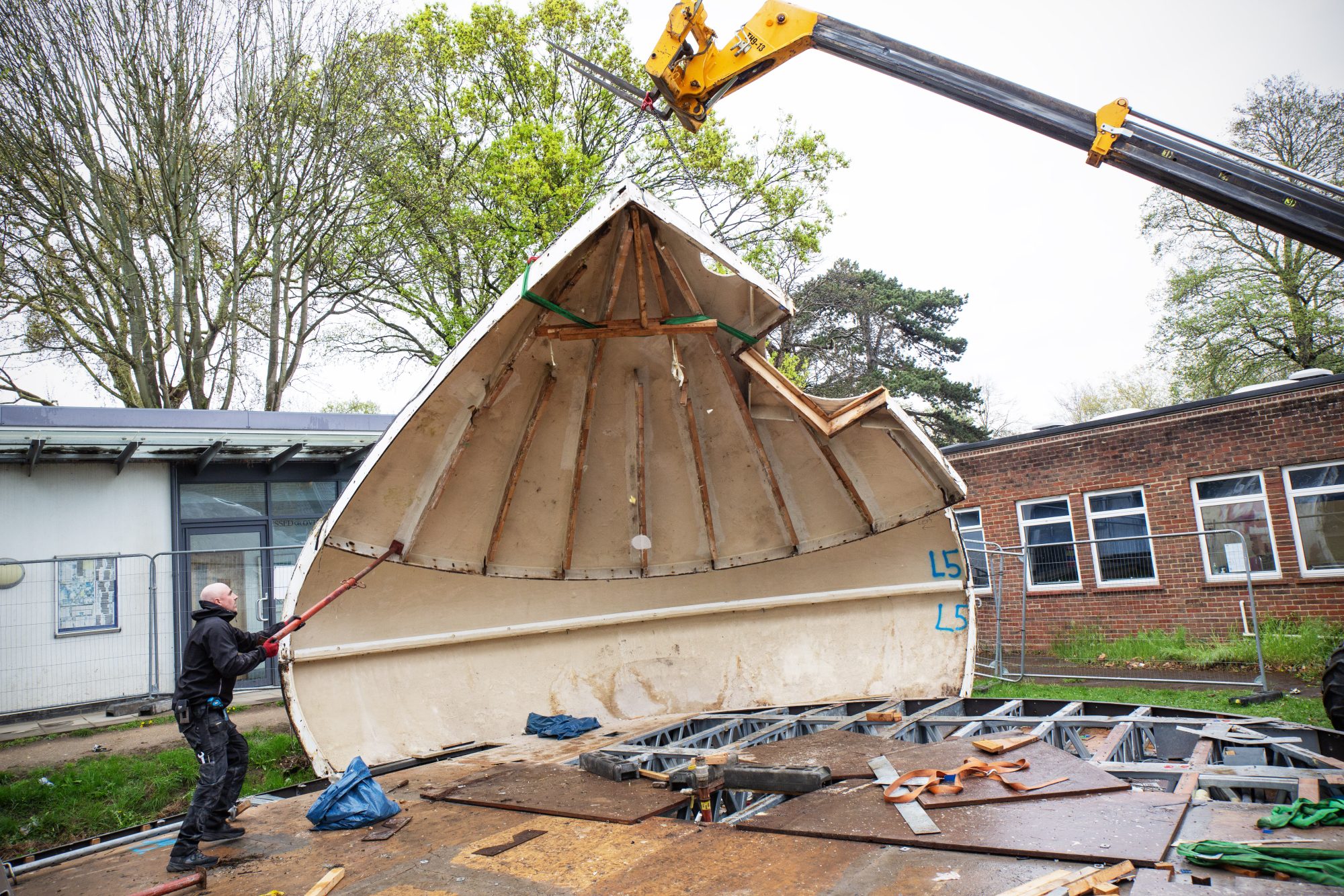 After several months of negotiation and with the support of Grey Court School, the classroom was carefully dismantled by an expert team of contractors over the Easter break, and finally left the site on what would have been Kaplicky’s 88th birthday (April 18th 2025). The component parts were transported by road to the Czech Republic, with reassembly and specialist restoration planned over the summer.