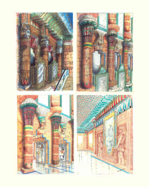 Original Mitchell sketches for the Harrod’s Egyptian Staircase