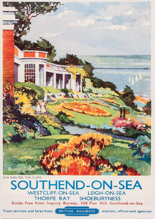 Between 1945 and 1957 a series of railway posters advertising Southend as a resort were produced with the Sun Shelter as a prominent feature at the top of the cliffs.